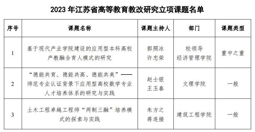 喜报!我校首次获批江苏省高等教育教改研究“重中之重”课题立项