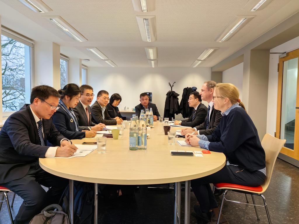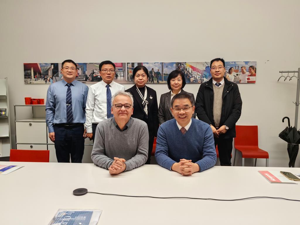 在德中科技与教育交流协会,潘志明校长一行与该协会主席王耀箴就开展中德合作办学等交流合作事项及共同关心的问题进行了协商,达成合作共识并签署合作备忘录。