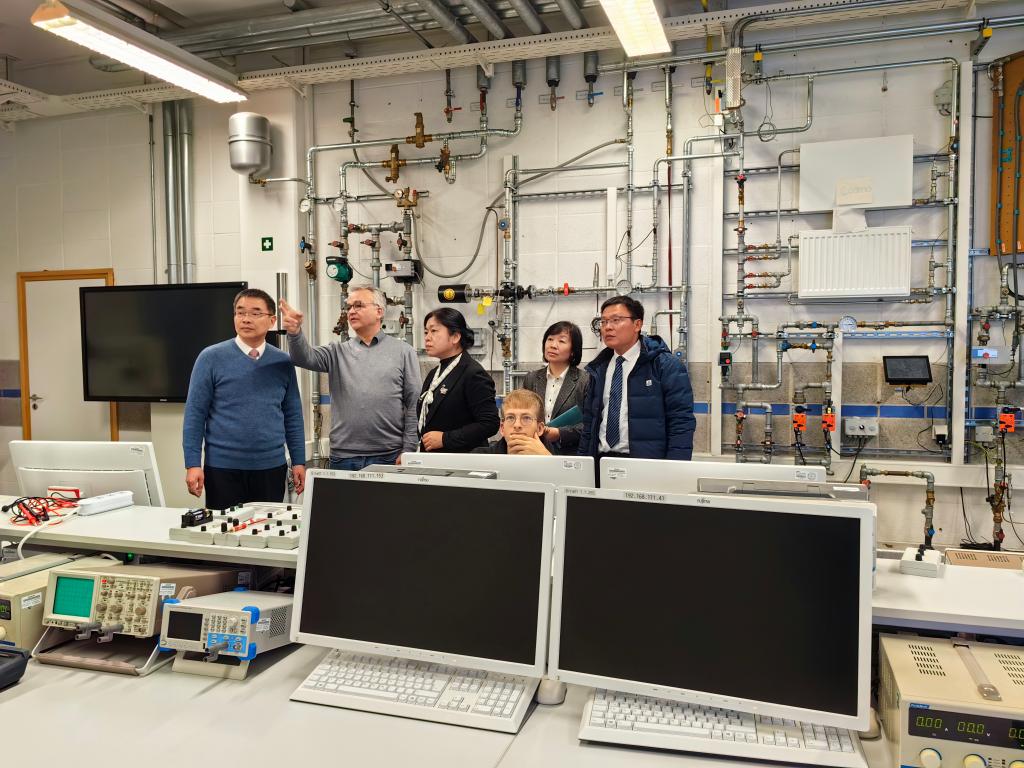 在阿尔伯特·雅加德高等学院,潘志明校长一行与该校校长Joël JACOB教授等深入交流。双方就学术研究、应用型人才联合培养、专业与课程体系建设、产学研体系架构及产教融合为地方服务等方面进行探讨,并签署了合作备忘录。在慕尼黑应用技术大学,潘志明校长一行与Martin Renner教授进行深入交流,并实地参观该校多个建筑应用实验室。在下莱茵应用科学大学,潘志明校长一行与德籍华人王适昶教授深入交流并参观所属研究所实验室和化学教学实验室。同时,双方就学术交流、科研合作等事宜进行了深入交流。