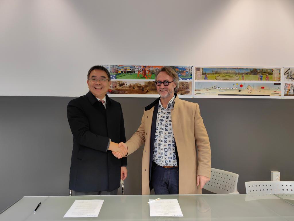 在托马斯莫尔大学,潘志明校长一行与该校建筑系系主任Stefan De Feyter教授和Marc Vandebroek教授等深入交流,参观了该校建筑学实验室,双方针对建筑专业课程设置、实践教学及科研项目等方面内容进行深入探讨。同时,在教师交流、学生培养等方面达成深入合作共识。