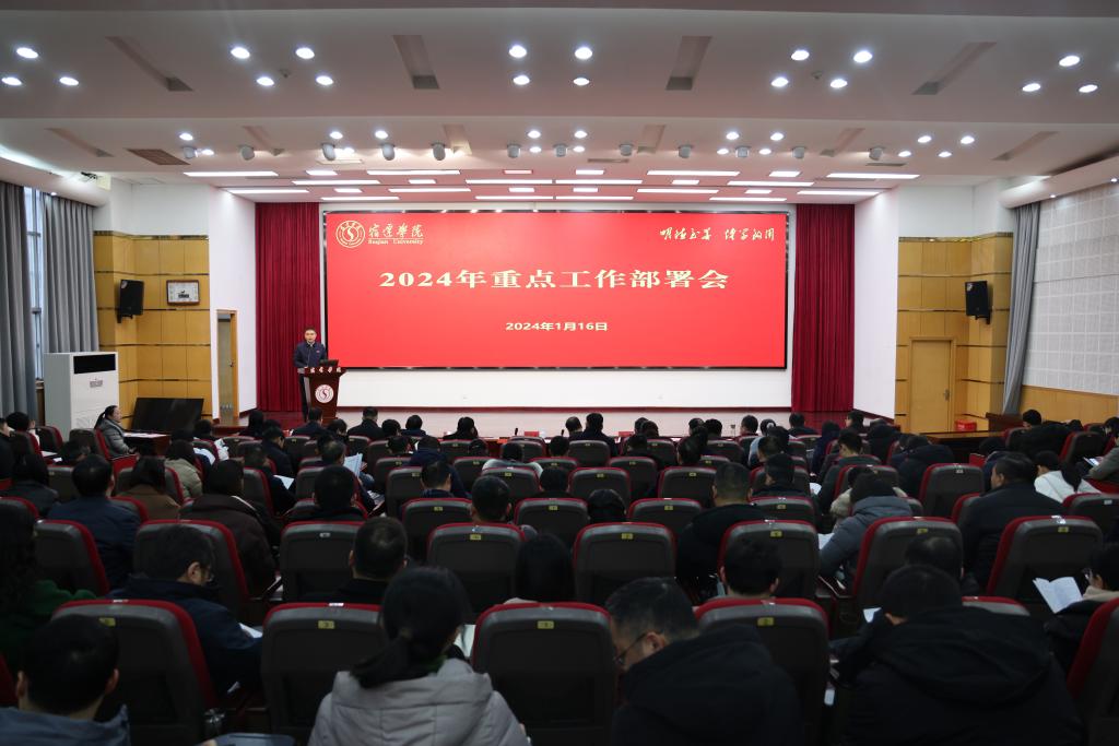 为谋划部署新的一年工作,1月16日,我校召开2024年重点工作部署会。校党委书记徐德及全体校领导出席会议,校长潘志明主持会议。