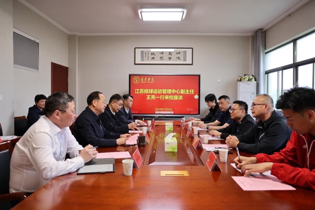 为优化我校体育师资队伍结构,以校地融合促进学校和地方体育事业高质量发展,5月6日上午,江苏省排球运动管理中心副主任王亮,江苏男排领队张冰、主教练王舒等人,将江苏省男排队长、国家级运动健将戴海波送我校报到入职,一同报到的还有国家级运动健将(原河南省男排主力队员)杜坤宇。