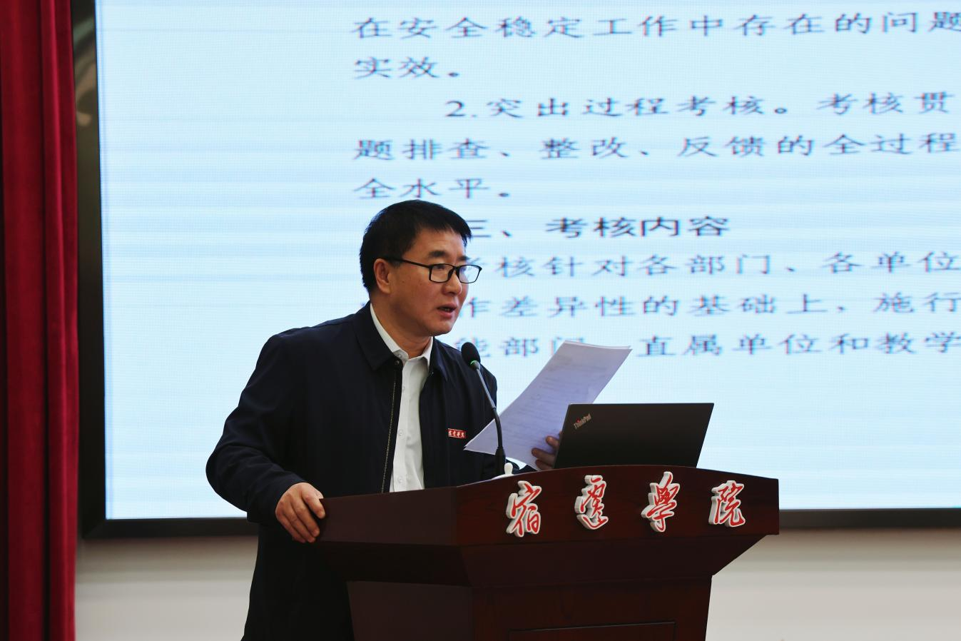会上,党委副书记田一聚全面阐释了为什么要创建高质量平安校园,客观分析了当前学校安全稳定工作存在的主要问题,并重点围绕“江苏省高质量平安校园建设高校考评指标体系”,结合学校实际对平安校园建设工作进行专题部署,明确提出了实施高质量平安校园创建的指导思想、总体目标、保障措施及“十大行动”建设任务。副校长施正荣宣读了学校“平安建设巩固提升年”工作目标考核办法。教务处、学工处、后勤处、经济管理学院、信息工程学院、马克思主义学院等职能部门和教学单位负责人围绕“平安校园建设”交流工作思路和目标举措等。