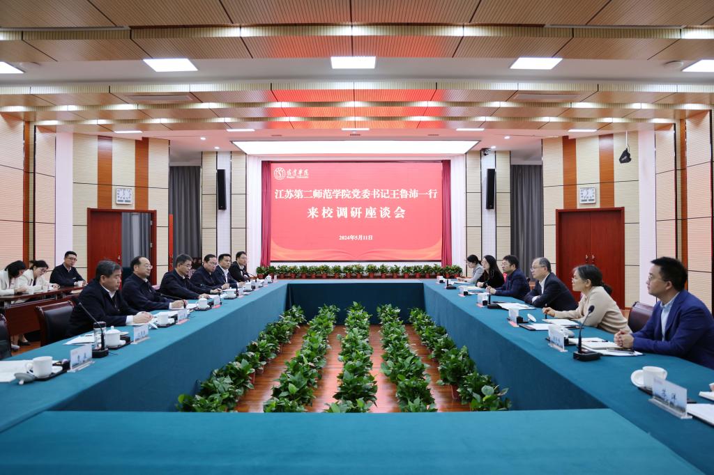 万物并秀,江河相约。5月11日上午,江苏第二师范学院党委书记王鲁沛一行来校调研,校党委书记徐德出席会议并讲话,校长潘志明主持会议。