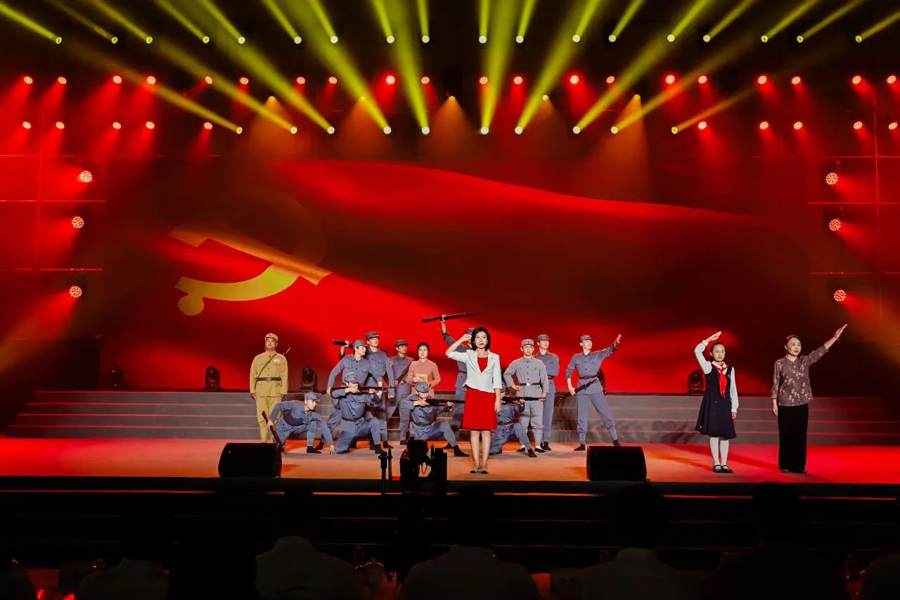 第一篇章——信仰之基在交响乐演奏《山河颂》中拉开帷幕,澎湃的旋律歌颂了祖国山河、中华民族和伟大的新时代;《党费》是一个根据真实故事改编的泗州小戏,讲述了抗战老兵张道干与党组织失去联系后,想方设法恢复党籍并续交党费的故事。舞蹈《雨花石的等待》带领大家沉浸式感受了进步青年许包野与妻子叶巧珍跨越时空的信仰之恋。