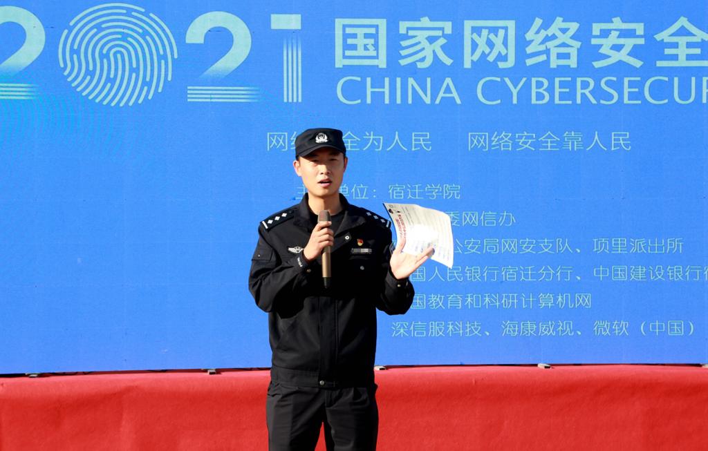 按照《2021年江苏省网络安全宣传周活动实施方案》要求,为进一步推动我校法治网络建设,提升学校网络安全教育管理水平,培养广大学生绿色上网、文明上网意识和良好习惯,增强师生网络安全防护能力,根据学校网络安全宣传周教育活动方案,10月13日下午,我校开展了网络安全宣传周线下教育宣传活动。宿迁市委网信办、宿迁市公安局网安支队进行了全程指导和协助。