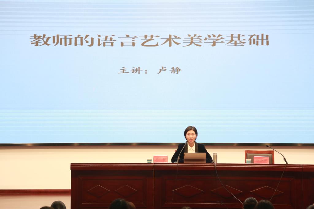 10月28日下午,应校语委办邀请,宿迁市朗诵学会创办人、市戏剧家协会朗诵专业委员会副主任、市文化广电和旅游局剧目工作室副主任卢静为我校师范生开设主题为“教师的语言艺术美学基础”讲座。她从教师的语言规范、语言艺术美学基础和对学生的影响讲起,将朗诵、演讲、讲故事和配音等多种语言形式的基本技巧和趣味性内容融为一体,同时伴有师生互动和优秀作品赏析,整个讲座非常生动和精彩。