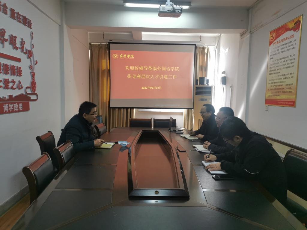 3月2日上午,副校长潘志明到外国语学院调研人才引进工作。