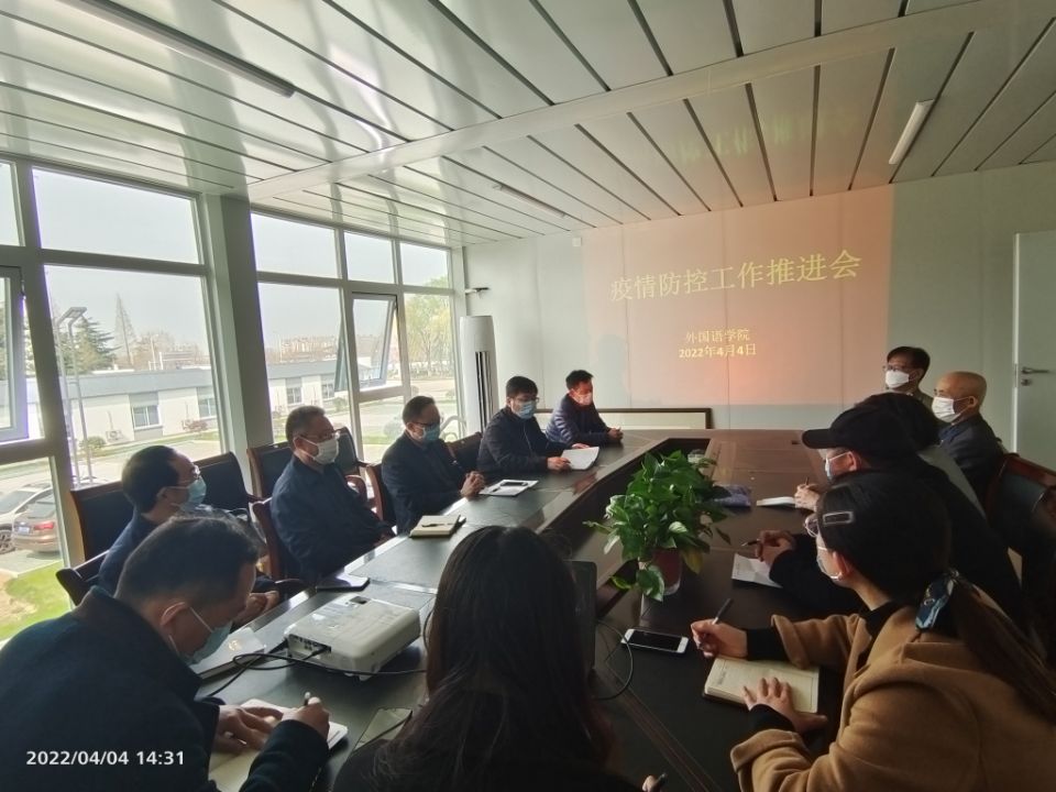 4月4日下午,外国语学院召开疫情防控工作推进会,全体在校教职员工参加,会议由副院长沈刚主持。