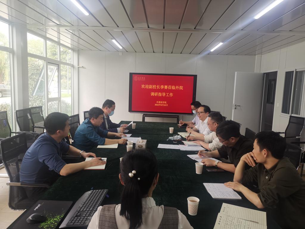 4月22日下午,副校长季赛带领学生处处长许立春和校团委书记葛崇勋,赴外国语学院调研指导学生工作。外国语学院领导班子和全体辅导员参会。
