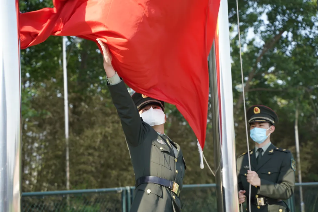 伴随着激昂的《义勇军进行曲》,在全体师生的注目下,五星红旗冉冉升起。学生代表深情朗诵了《请党放心 强国有我》。