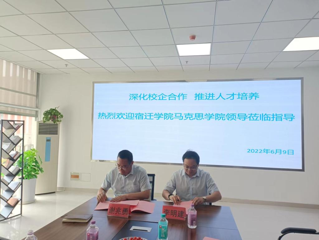 谢兆勇董事长介绍了企业居家养老、信息服务等业务开展情况,并表示愿意在企业文化、党建工作、人才招聘等方面加强与马克思主义学院的合作。李明建院长就马克思主义学院基本情况、学校访企拓岗及“三联三融”政策进行了介绍。之后,双方就学生实习实践、就业及劳动教育基地合作内容进行了深入交流并达成共识。