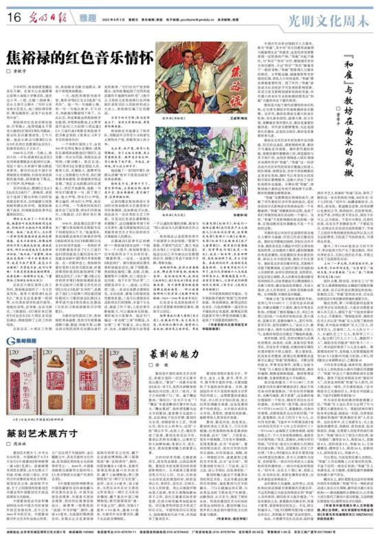 《光明日报》2022年8月5日第26484号发表我校艺术与传媒学院美术教师徐健文章——《篆刻的魅力》,网址及原文如下: