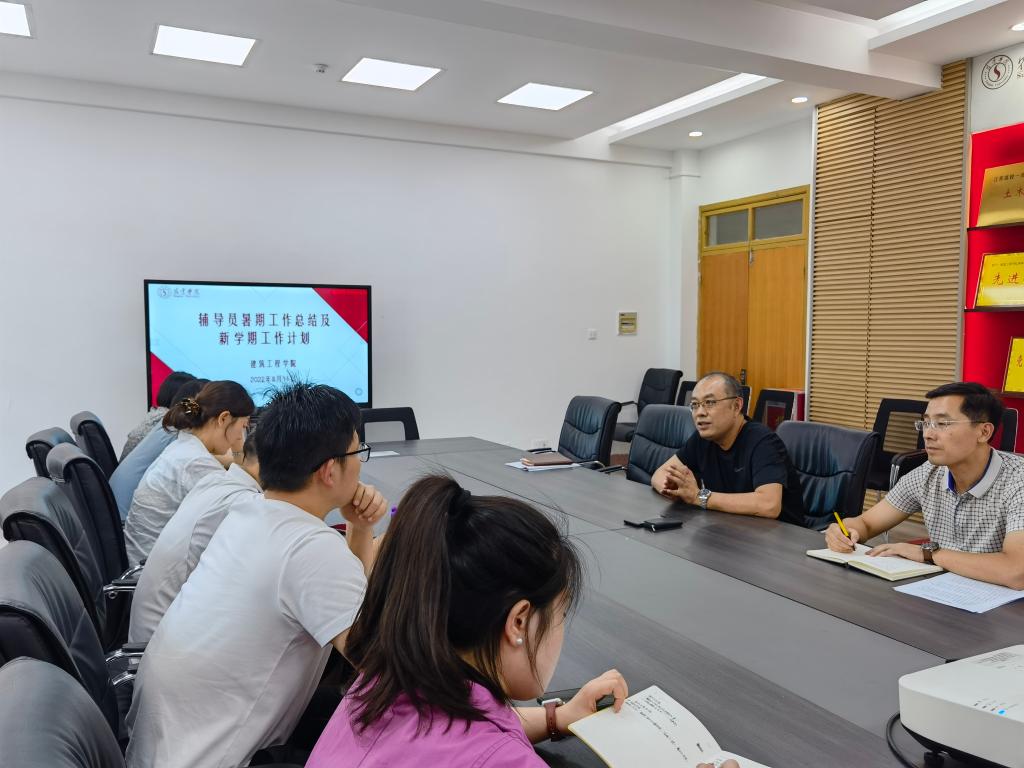 8月11日下午,建筑工程学院召开新学期全体辅导员会议,主要就暑期工作总结和新学期工作计划作统一部署。党委书记郭振宇、党委副书记任晨阳和全体辅导员老师参加。会议由党委副书记任晨阳主持。