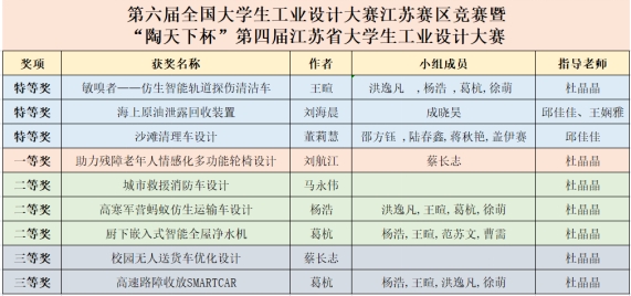 近日,2022年(第六届)全国大学生工业设计大赛江苏赛区竞赛暨“陶天下杯”第四届江苏省大学生工业设计大赛落下帷幕。我校艺术与传媒学院学子获得特等奖3项、一等奖1项、二等奖3项、三等奖2项,其中特等奖作品推荐参加国赛。杜晶晶、邱佳佳、王娴雅获省优秀指导老师奖,我校获最佳组织单位奖。