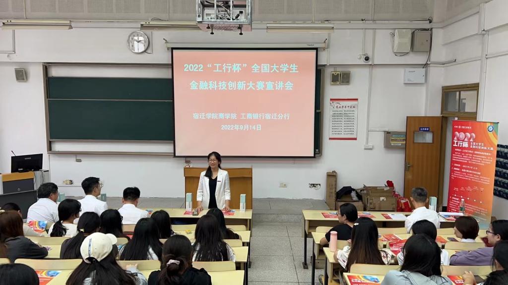 商学院联合宿迁市工行,举办了2022“工行杯”全国大学生金融科技创新大赛暨银行招聘宣讲会,商学院金融系150名师生参加宣讲会。