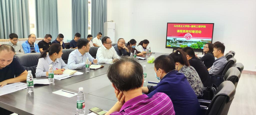 为充分发挥课程思政与思政课程同向育人作用,进一步提升课程思政育人效果,9月21日下午,马克思主义学院院长李明建、副院长唐献玲一行9人来建筑工程学院开展课程思政对接交流活动。建工院30余位专业课教师参加活动。