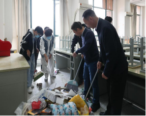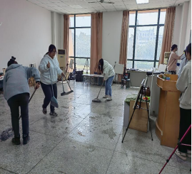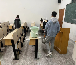 教学楼内,同学们积极分工,井然有序,逐个教室进行清理。同学们认真扫地、拖地、擦桌凳、捡纸屑、清垃圾,为广大同学创造良好的学习环境,展现了奉献、友爱、互助、进步的志愿服务精神。