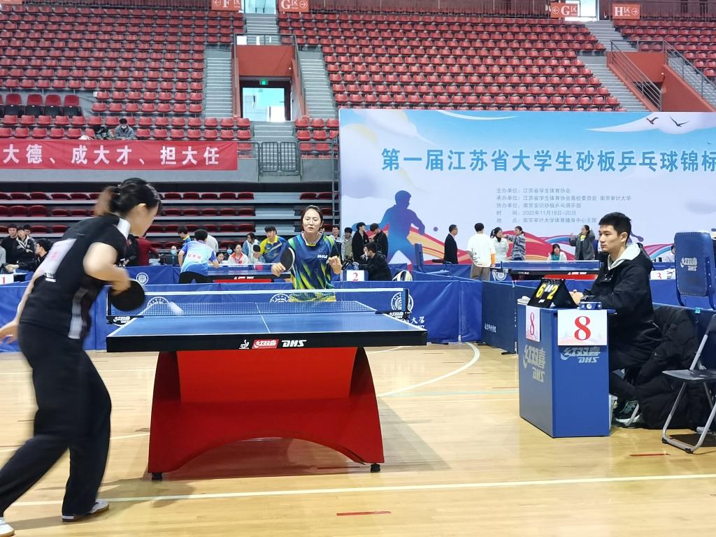 11月17日至20日,第一届江苏省大学生砂板乒乓球锦标赛在南京审计大学开赛。我校女运动员李润楠凭借扎实技术,勇夺女子单打冠军,李润楠还和男选手孙思文配合,夺得混双项目冠军。