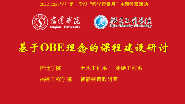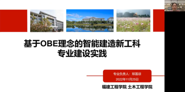质量,11月25日,建筑工程学院土木工程系、测绘工程系与福建工程学院土木工程学院智能建造教研室联合开展主题为“基于OBE理念的课程建设研讨”活动,活动采用线上线下同步方式进行。