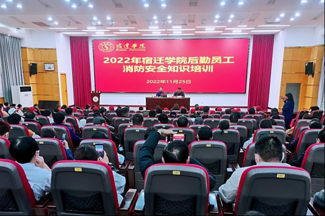 为普及消防安全知识,提高防火应急处置能力,11月25日,后勤处联合保卫处组织开展后勤员工消防安全知识讲座及消防技能培训。宿城区消防救援大队参谋张雨担任授课教官,后勤处新入职教职工,招待所、餐饮商贸、环卫保洁、水电维修、教室管理等后勤从业人员200余人参加培训。
