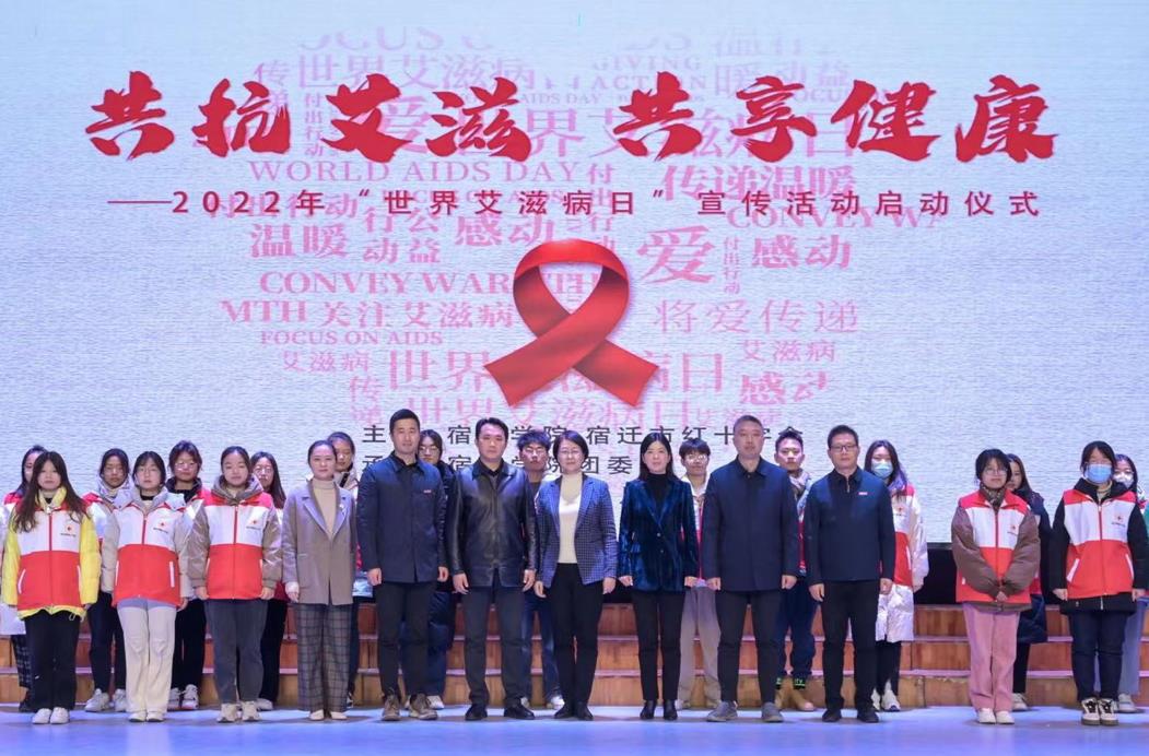 11月30日,由18新利luck菲律宾 与宿迁市红十字会主办,18新利luck菲律宾 团委承办的“共抗艾滋·共享健康”--第35个世界艾滋病日宣传活动启动仪式在我校大学生活动中心隆重举行。副校长侍旭,市红十字会党组书记、副会长夏雪梅,市红十字会党组成员、秘书长曹丽,校团委书记葛崇勋参加启动仪式。
