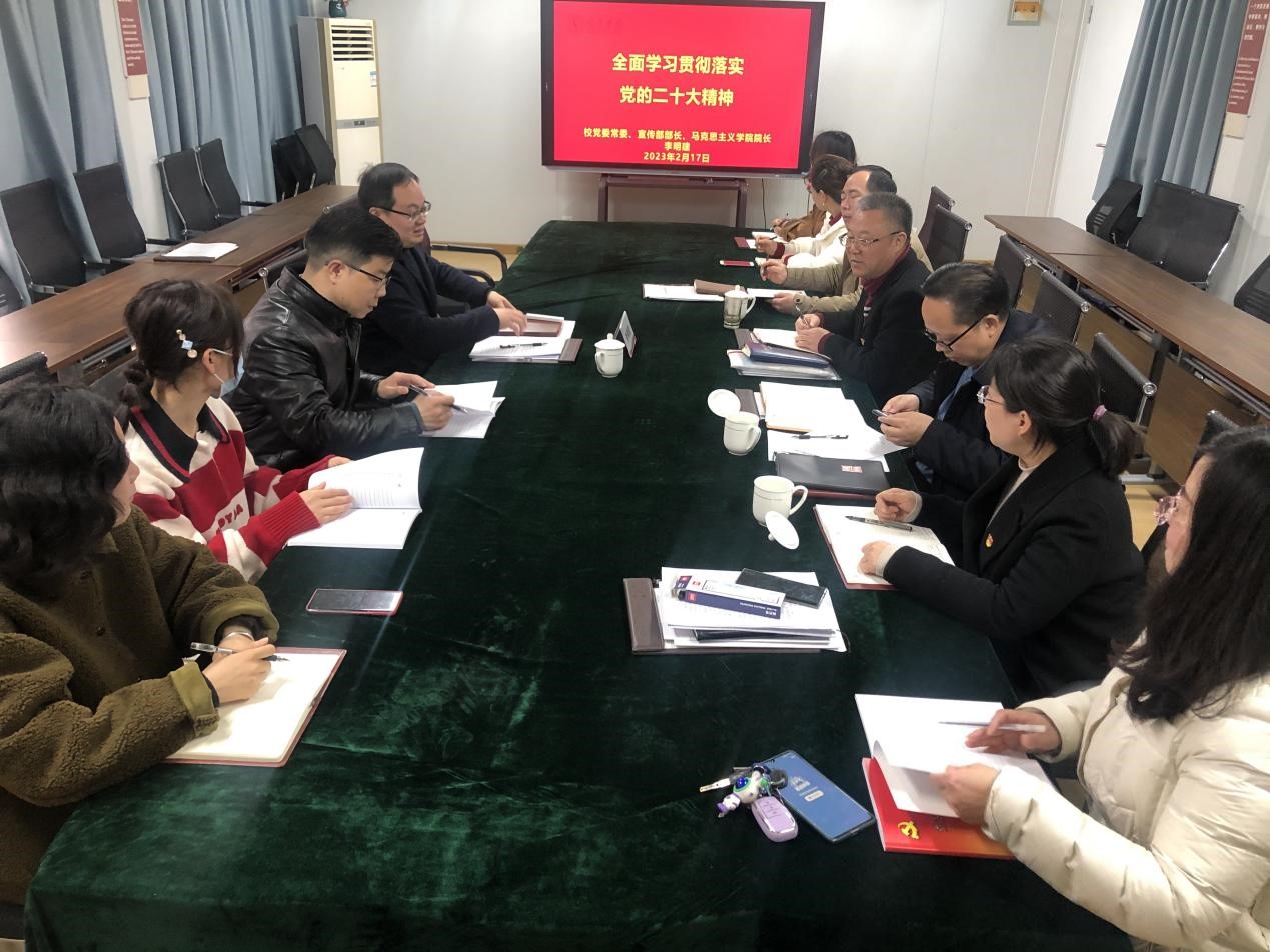 2月17日,校党委常委、宣传部部长、马克思主义学院院长李明建为外国语学院教职工宣讲党的二十大精神。