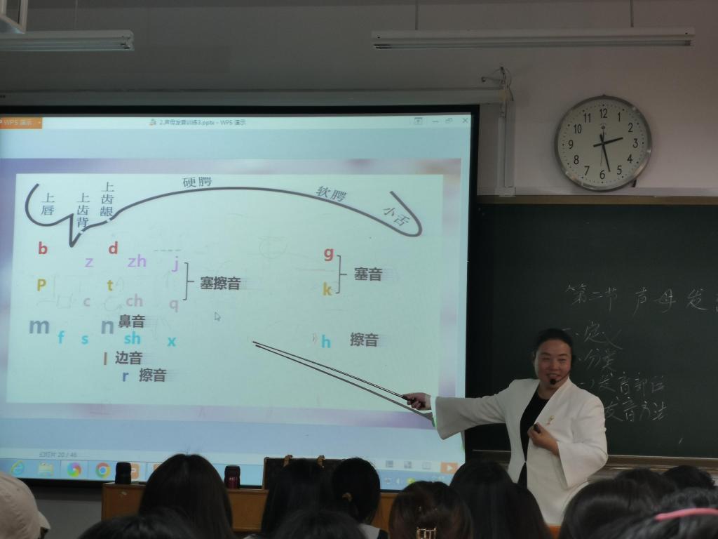 李秀红老师是省级创新教学大赛(教授组)一等奖获得者,长期致力于课堂教学改革与实践。本次示范课,她以声母发音训练为主题,阐释了声母的定义、分类,示范了声母的发音方法,教学内容充实,教学环节设计灵活,充分体现信息化教学特点和实践课性质,突出技能训练要求。