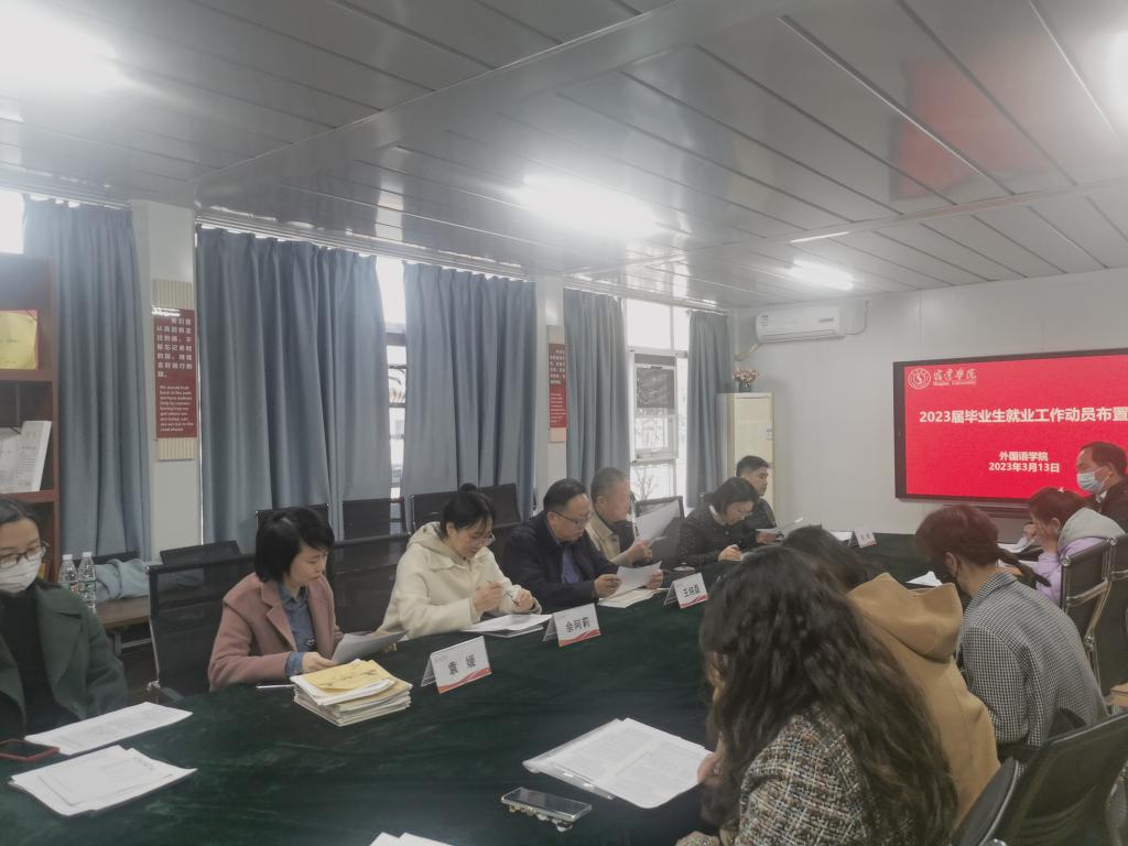 为促进2023届毕业生高质量就业,3月13日下午,外国语学院召开就业工作动员布置会。外院党委书记管志强、副院长(主持工作)王纯磊、副书记王倩、系主任、2023届毕业生班主任及辅导员参加会议。