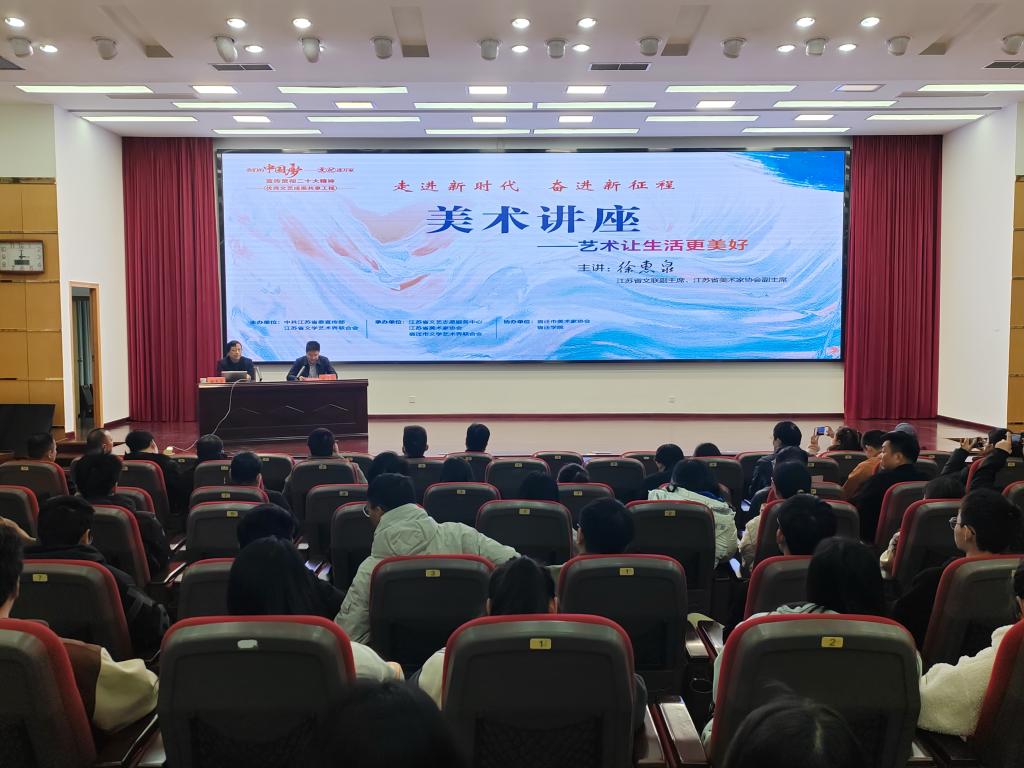 为宣传贯彻党的二十大精神,推动优秀文艺成果共享工程,3月16日下午,艺术与传媒学院在求索楼学术报告厅举办“走进新时代,奋进新征程——艺术让生活更美好”美术讲座。讲座由省文联副主席、省美术家协会副主席徐惠泉主讲。