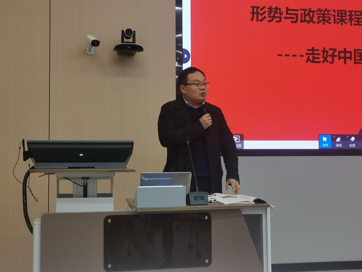 3月25日上午,马克思主义学院特邀江苏省第二届思想政治理论教学展示获奖者南师大教师张良,为马院《形势与政策》全体任课教师作“中国式现代化之路”专题讲座,校党委常委、宣传部部长、马克思主义学院院长李明建,马院副院长唐献玲参加讲座。