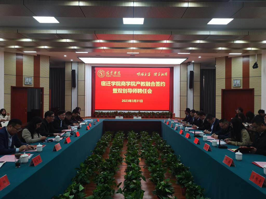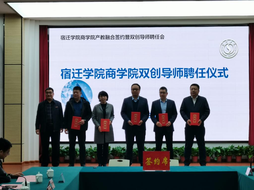 服务宿迁“三联三融”“十大星火计划”实施意见》落地落实,商学院3月31日举办校企产教融合签约暨双创导师聘任会,牵手14家战略合作企业,集中聘任29位双创导师。商学院副院长马卫东、副院长姜丽丽,各系负责人、专业带头人,部分师生代表参加签约。