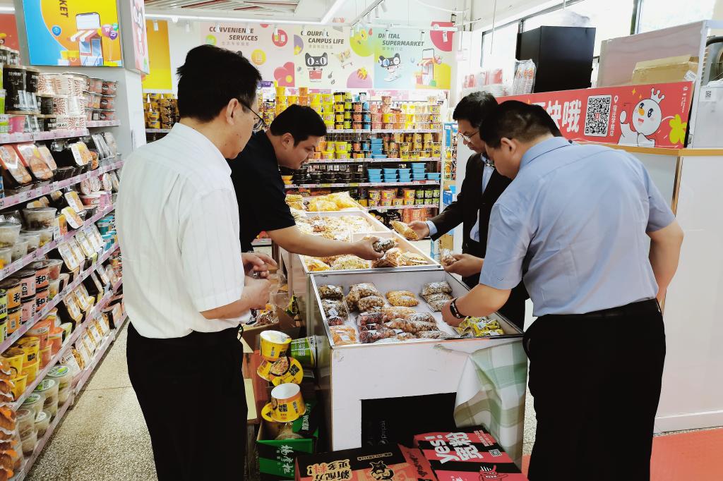 汇报会后,检查组对照检查标准,实地检查了食堂、超市、学生宿舍、信息工程学院实验室、技防监控中心等重点场所,听取相关工作人员的现场汇报,并仔细查阅了安全管理工作台账资料。