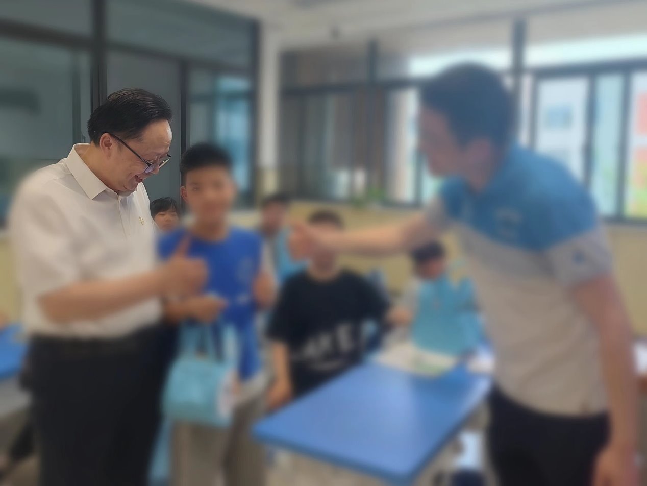 外院党委书记管志强表示,通过调研参观,为特殊教育学校的情怀所感动,希望双方共同努力,为特教事业做出贡献。外院副院长(主持工作)王纯磊指出,外院将利用聋人语言研究科研平台,进一步加强与宿豫区特殊教育学校的合作,激励更多老师和青年学生传递爱心,给予特殊群体更多的关注与关爱,让无声的世界听见爱。外院领导班子参观了特殊学校校园设施、学生食堂、教室教学环境、融合教育平台等,并与特校学生互动,送上了六一礼物和节日祝福。