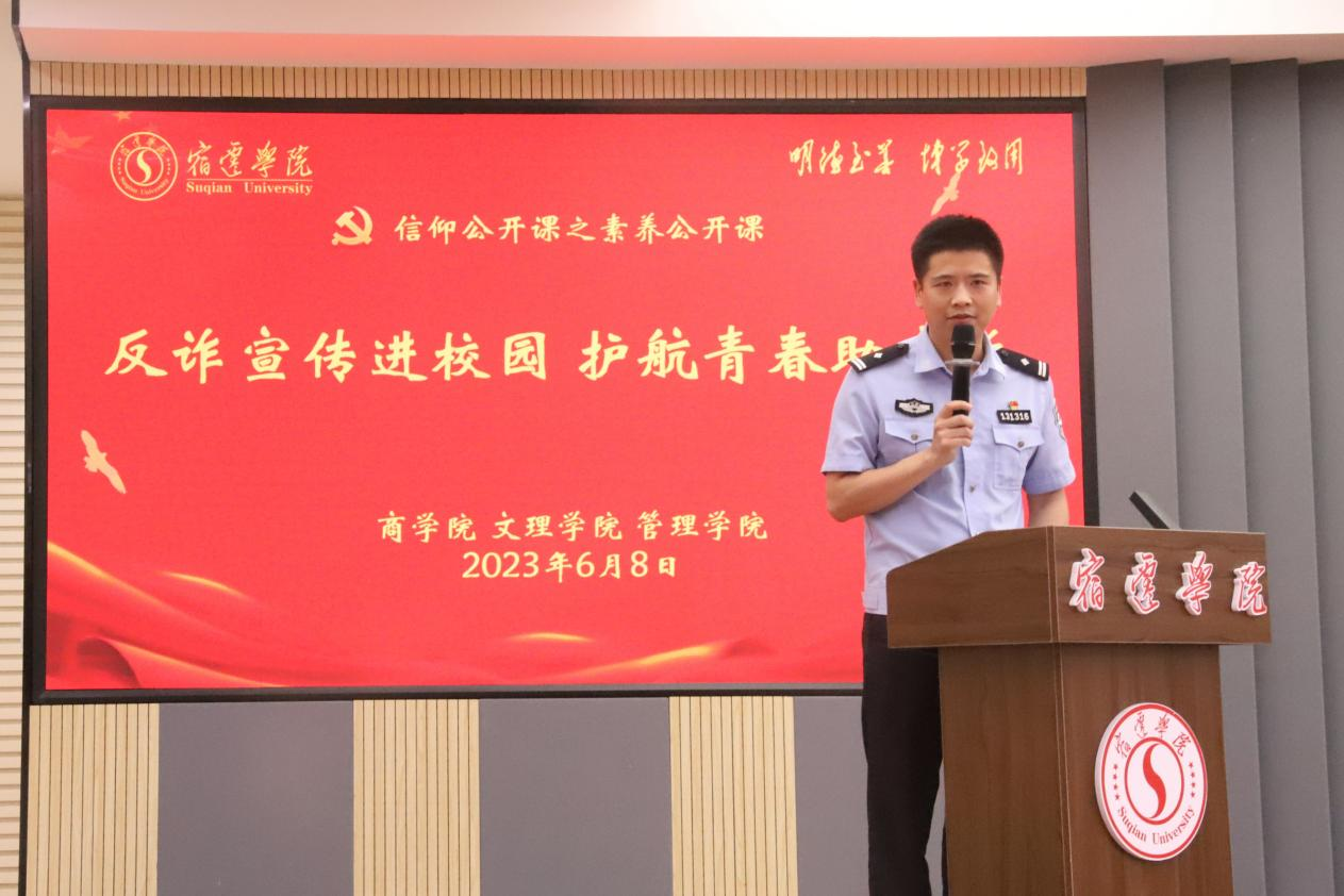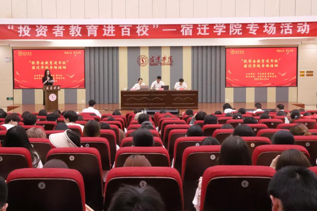专场活动在新图二楼报告厅举行。中金财富证券宿迁洪泽湖路营业部党支部书记、总经理王爱华与公安局宿城分局项里派出所柳明波联合为商学院、文理学院、管理学院500多名师生作专题宣讲。
