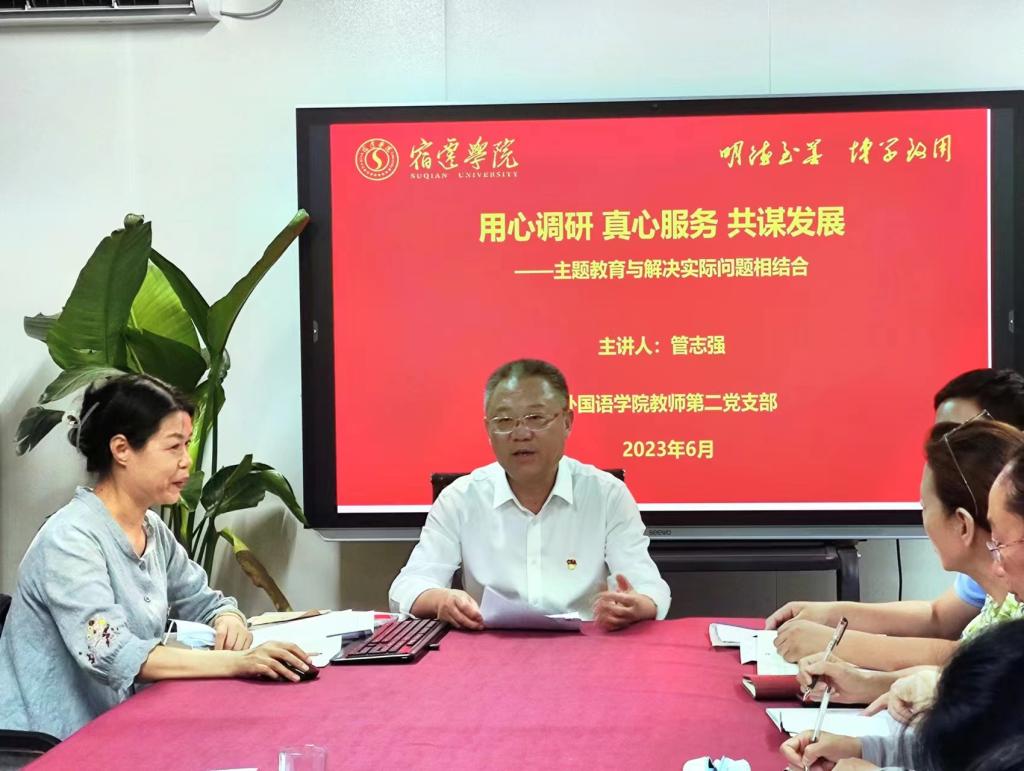 日前,外国语学院教师第二党支部开展学习贯彻习近平新时代中国特色社会主义思想主题教育,外院党委书记管志强和副书记王倩分别给师生上党课。
