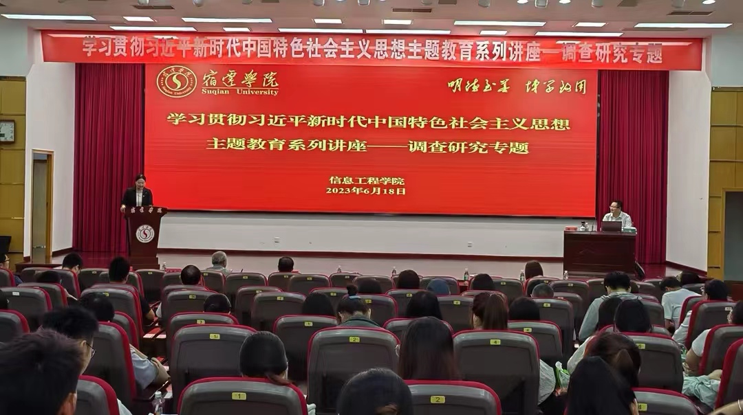 为推进学习贯彻习近平新时代中国特色社会主义思想主题教育,提高调查研究能力水平,日前,信息工程学院举行“主题教育·调查研究”专题培训,邀请宿迁市委研究室发展政策研究处处长、改革督察处处长程闯作专题辅导。信息工程学院党委副书记(主持工作)万娟、副院长陈林及师生党员参加活动。