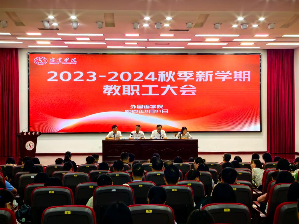 凝聚共识,聚力启程。8月31日下午,外国语学院在求索楼报告厅召开2023-2024秋季新学期教职工大会暨师范认证冲刺年动员大会。会议由外院党委副书记王倩主持。