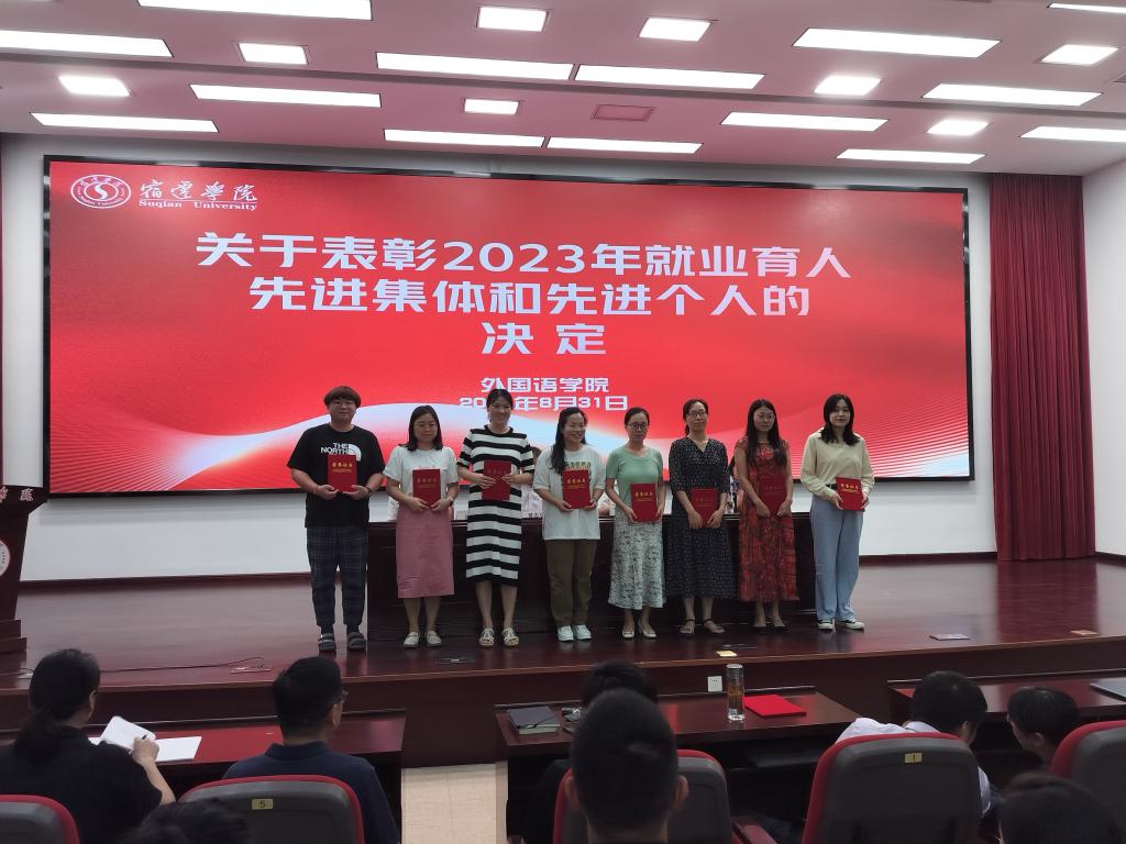 会上,副院长沈刚宣读了《关于表彰2023年就业育人先进集体和先进个人的决定》《关于表彰本科教学工作合格评估先进个人的决定》《关于表彰外国语学院首届青年教师优课比赛获奖者的决定》,并对获奖人员进行表彰。