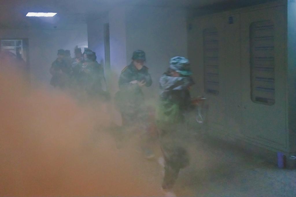 晚上10时,新生消防应急疏散演练正式开始。工作人员按照预案在新生公寓楼前点燃烟饼,实景模拟火场,公寓楼前冒出滚滚浓烟,消防警铃随即响起,各公寓楼层的消防广播也提醒学生迅速撤离。4000余名军训新生在现场疏导员引导下迅速向公寓楼外撤离,弯腰、护头、捂住口鼻,全体人员安静有序通过楼道到达应急出口,按既定路线撤出公寓楼,抵达指定地点集合并清点人数。