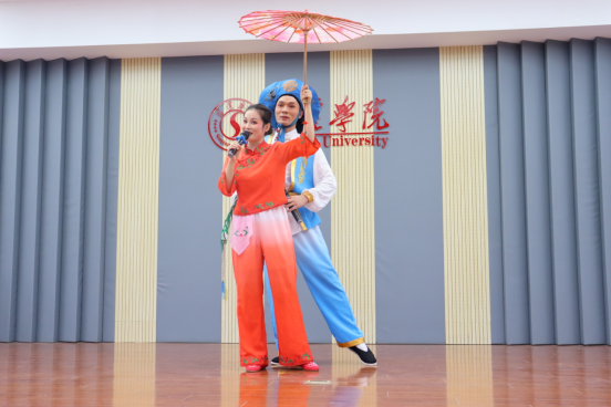 李洪湘老师以非遗项目泗州戏为切入点,从历史渊源、发展历程、传承谱系、艺术特点等方面,用通俗易懂的形式讲授非遗知识,以扎实的演唱功底展示非遗之美。
