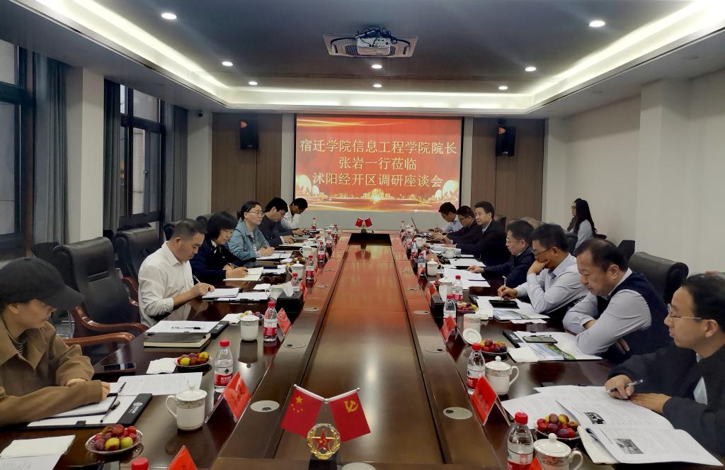 10月13日下午,信息工程学院(生物与材料工程学院(筹))院长张岩、党委书记万娟等一行9人赴沭阳经济开发区调研。沭阳县副县长、经济开发区党工委副书记、管委会副主任徐光良,党工委委员、管委会副主任潘亚超,党工委委员、经发局局长丁训正参加调研。