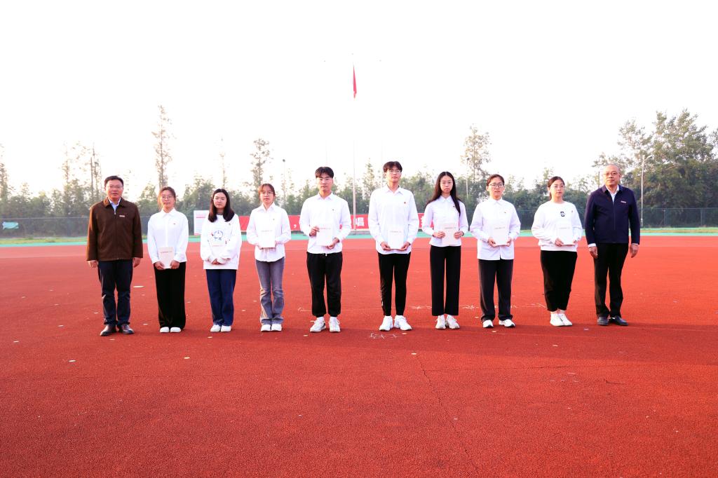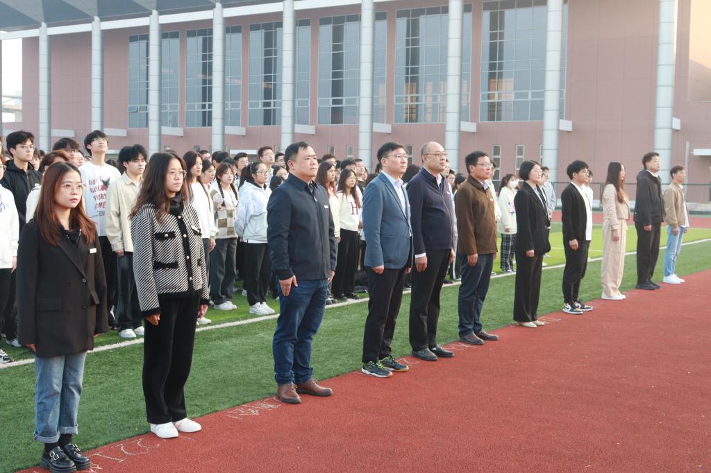 迎着朝阳,国旗护卫队迈着铿锵有力、整齐划一的步伐护送五星红旗至升旗台,伴随着激昂雄壮的《义勇军进行曲》,五星红旗冉冉升起。全体师生行注目礼,奏唱国歌,为祖国献上最真挚的祝福。升旗仪式上,郭振宇书记和朱方之院长为党员代表赠送《论党的青年工作》书籍,寄语青年学生从中汲取砥砺奋进的精神力量。