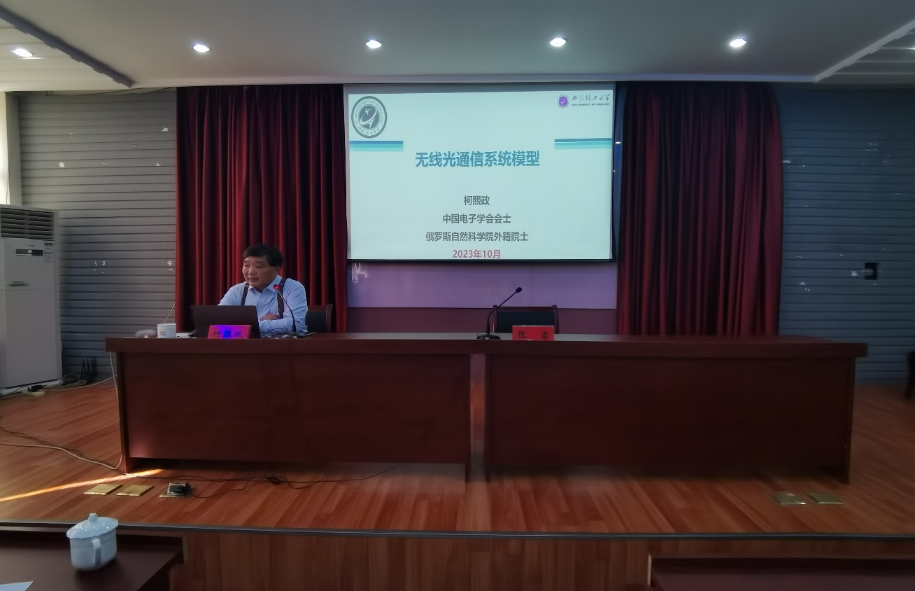 10月13日,西安理工大学教授、俄罗斯自然科学院外籍院士柯熙政应邀以“无线光通信系统模型”为题给信息工程学院120余名师生作学术报告,信工院院长张岩主持报告会。