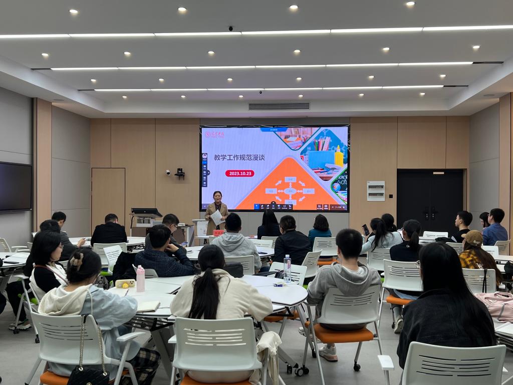 靳淑梅教授以“教学设计的内在逻辑与维度”为主题,围绕目标设计、内容设计、实施设计、评价设计、教学反思几个方面,详细讲解如何进行教学设计、如何选择合适的教学方法、如何进行有效教学评价。张春红教授以“教学工作规范漫谈”为主题,结合学校教学管理文件制度及自身督导检查经验,为青年教师介绍了教学工作规范内容、教学规范检查重点、教学规范实施要点以及自身的教学案例分享等方面内容。