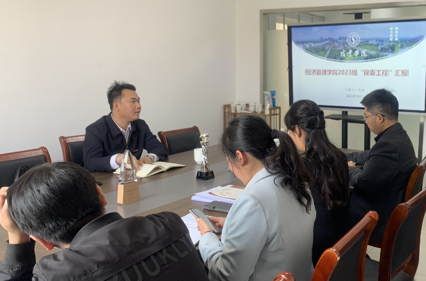 沈姣副书记从经管院大学生“锦囊工程”实施细则、工作方案、工程菜单、开题要求等方面详细汇报了学院2023级“锦囊工程”实施情况,并就目前存在的问题与下一步工作计划做深入交流。