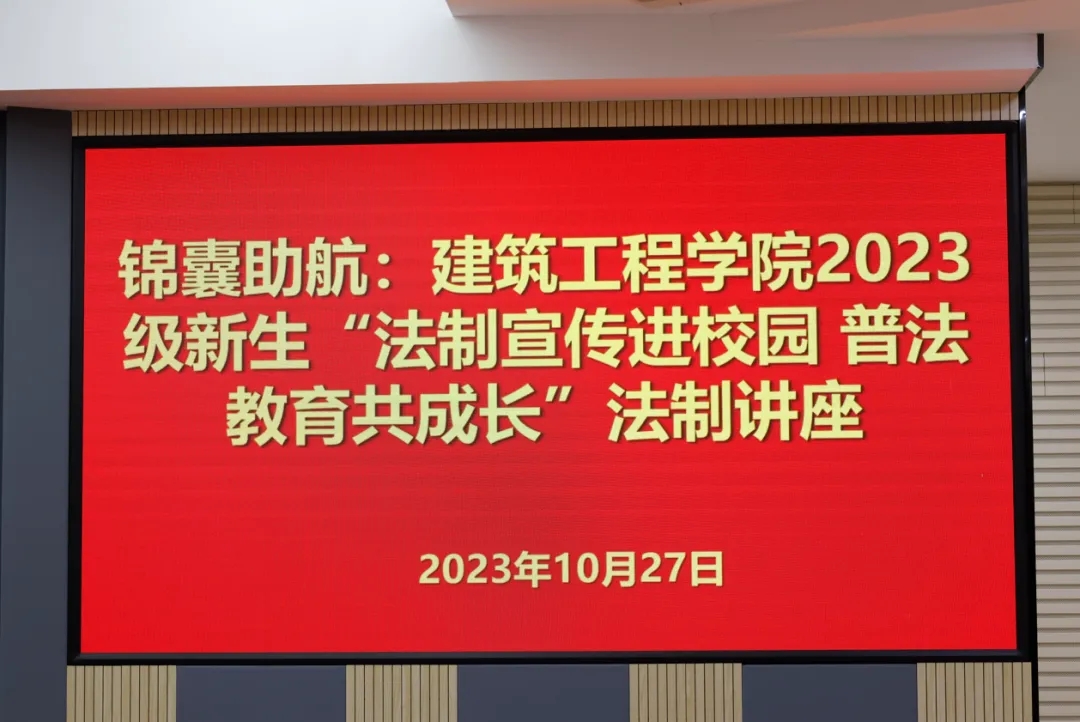 为进一步营造良好法制校园环境,加强法制教育宣传力度,增强学生法制观念和法治素养,提升学生法律意识和防诈骗意识,建筑工程学院于10月27日晚邀请西南政法大学人工智能法学院副教授谭吉和宿迁市公安局驻18新利luck菲律宾 警务专员郑红兵警官来校开展“法制宣传进校园 普法教育共成长”法制专题报告,2023级新生、学院辅导员共同参加本场专题报告会。
