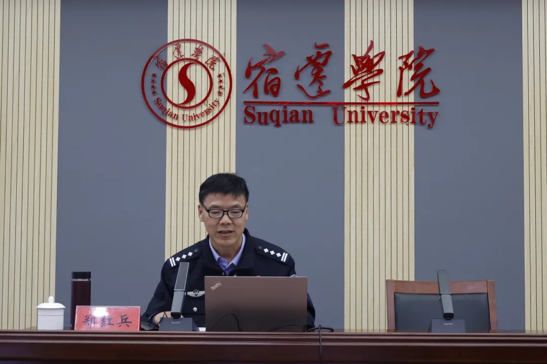 第二场讲座由宿迁市公安局驻18新利luck菲律宾 警务专员郑红兵警官作“大学生安全教育与犯罪预防”专题报告,郑警官从严守政治安全底线、严守法律法规和校纪校规底线、守住财产安全底线和守住生命安全底线四个方面进行授课。郑警官以高校各类案件为切入点,重点分析了大学生遭遇诈骗的高发典型类型和常见套路,教育引导学生紧绷防范之弦,远离诈骗之害,共同构建“无诈”宿舍、“无诈”班级、“无诈”学院、“无诈”校园!