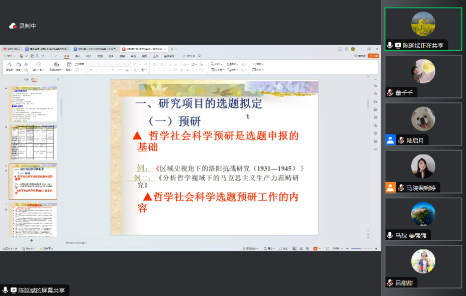 陈延斌教授结合自身丰富的申报经验,围绕研究选题拟定、申报书写作等方面展开,详细讲解了哲学社会科学研究基础和选题凝练的重要性。陈延斌教授结合相关案例,分析了项目申报书的撰写要求与注意事项,就马院教师初定选题逐一进行点评,讲座具有较强的指导性和可操作性。