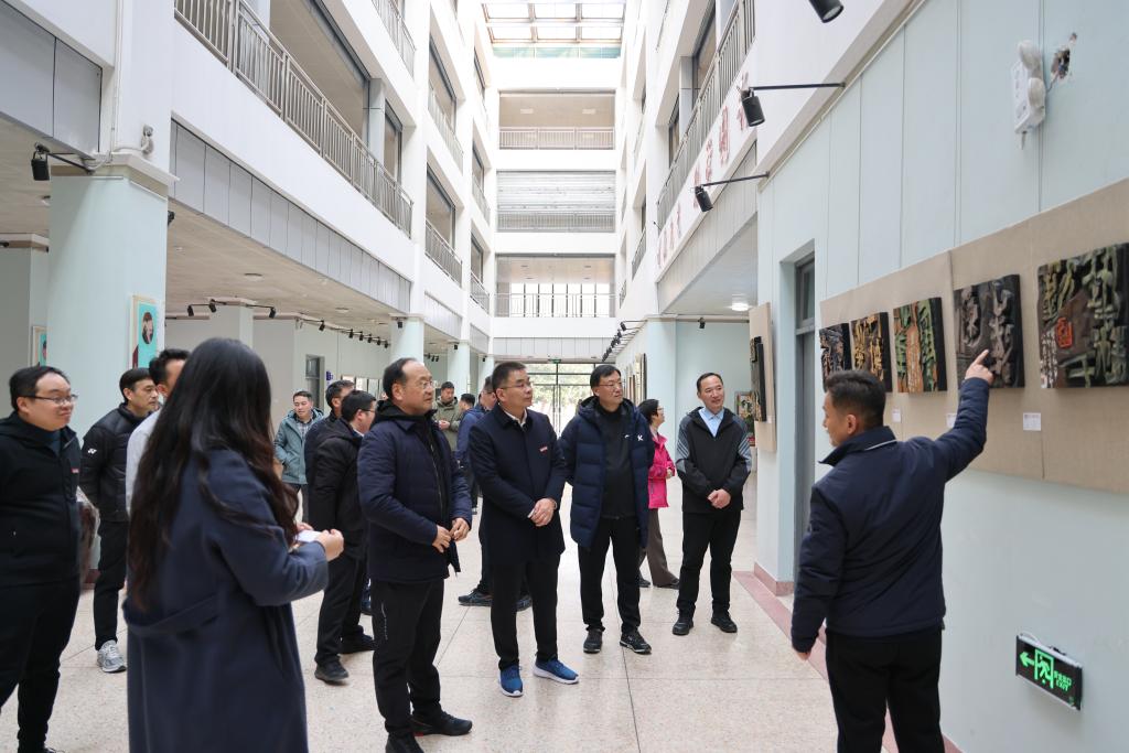 此次展览作品涵盖绘画、书法、书刻、版画、摄影等多种艺术形式,题材多样、内容丰富、传承创新、各具风格,既有博大、厚重的扛鼎之作,也不乏清新、典雅的性灵小品,深刻展示了艺术的博大精深,也生动展现了我校师生的创作实力。校领导一行认真观看了展出作品,详细了解作品的创作背景、文化内涵,对展出作品的思想性、艺术性给予高度评价。